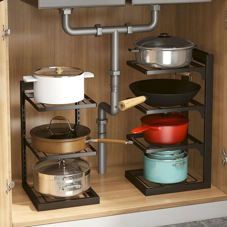 ชั้นวางของใต้ซิงก์สแตนเลส แบบหลายชั้น